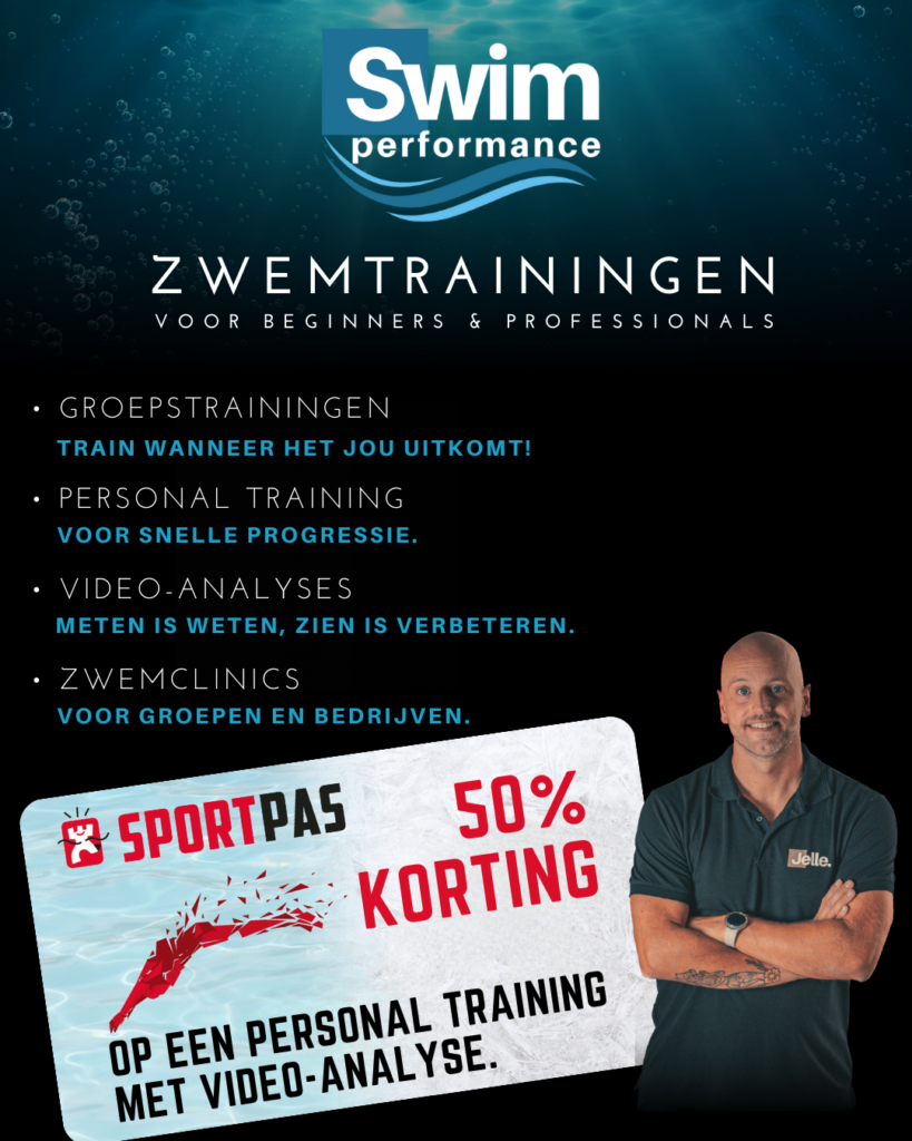 Speciaal voor Sport Voordeel abonnementhouders biedt Swim Performance maar liefst 50% korting op een eenmalige personal training met video-analyse. Tijdens deze training wordt je zwemtechniek uitgebreid geanalyseerd en krijg je gerichte feedback om efficiënter en sterker te zwemmen. Of je nu net begint of al ervaren bent, de begeleiding wordt volledig afgestemd op jouw niveau en doelen.